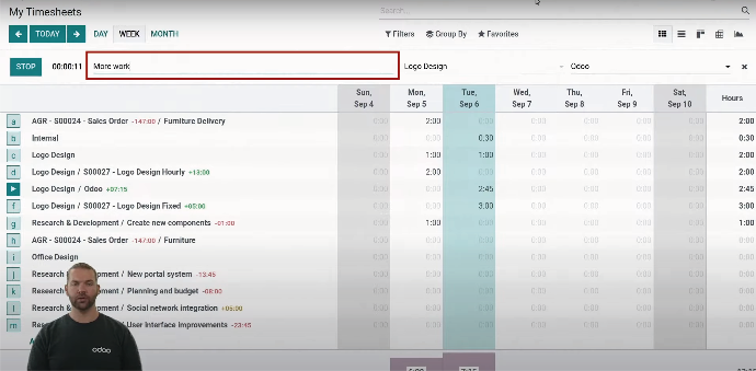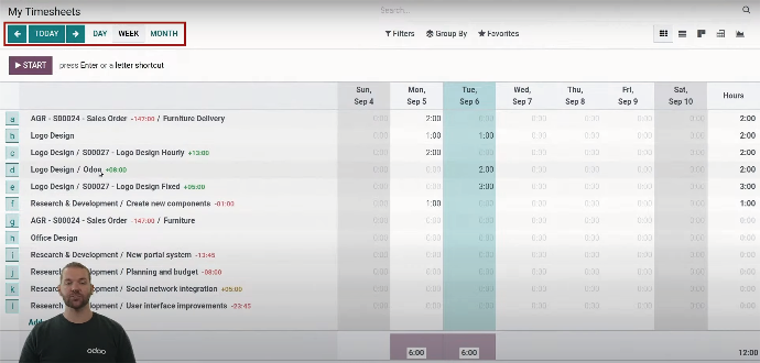 Con el módulo de timesheet de Odoo esto es posible. A continuación te mostramos una pequeña guía de los datos que puedes observar en tu hoja de horas y para qué sirve cada apartado: