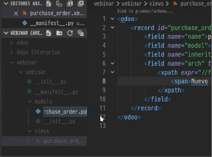 d. Back in your XML, create a New file from model, in this case you can name it purchase_order.py